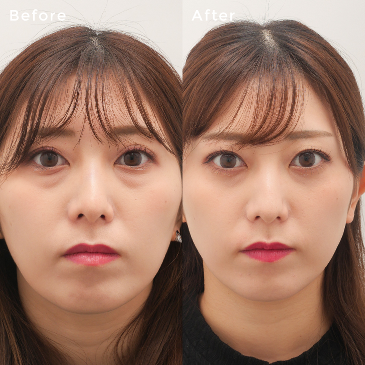 目の下の結膜部分から目の下の膨らみ、たるみ、赤クマ、黒クマの 原因となる眼窩脂肪を取り除く施術です。 まぶたの裏側の結膜部分を切るので、 傷は皮膚表面から見えません。 縫合・抜糸をする必要がなく、 ダウンタイムが外科施術の中で比較的短い施術になります。
