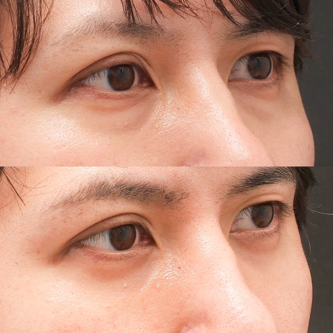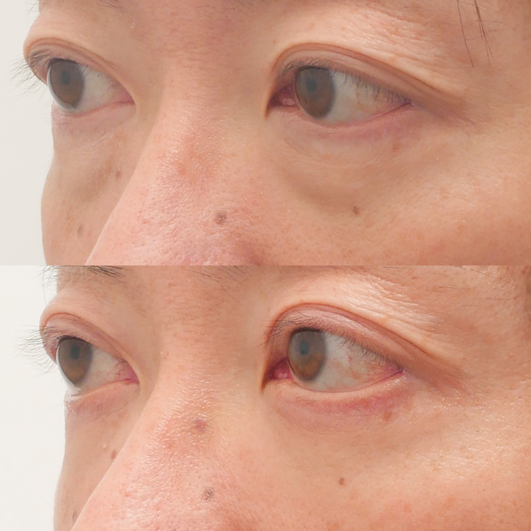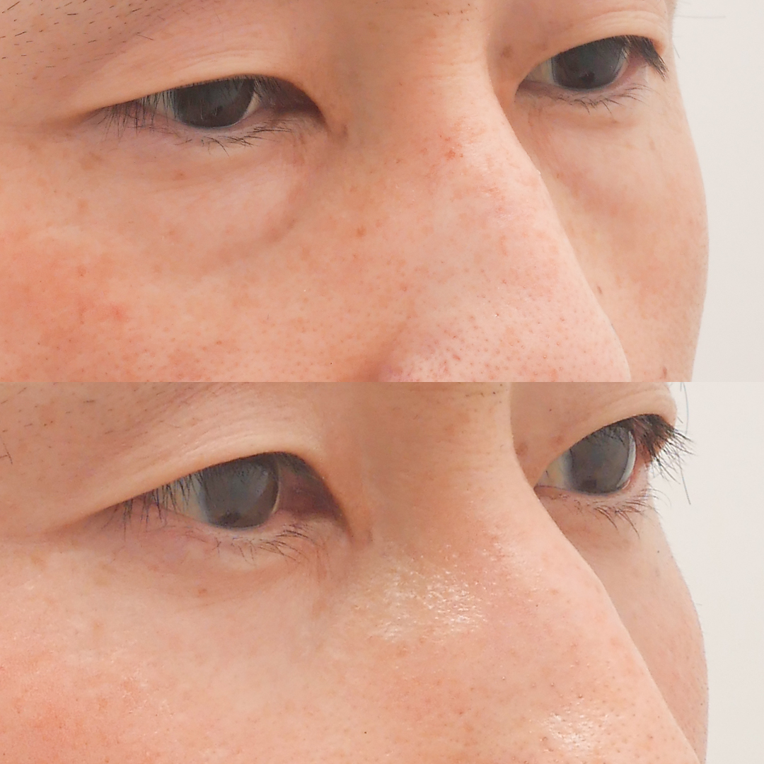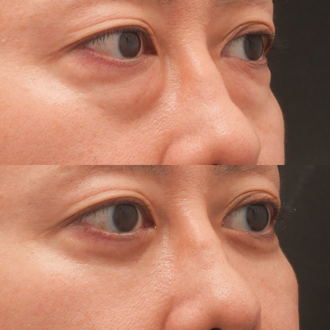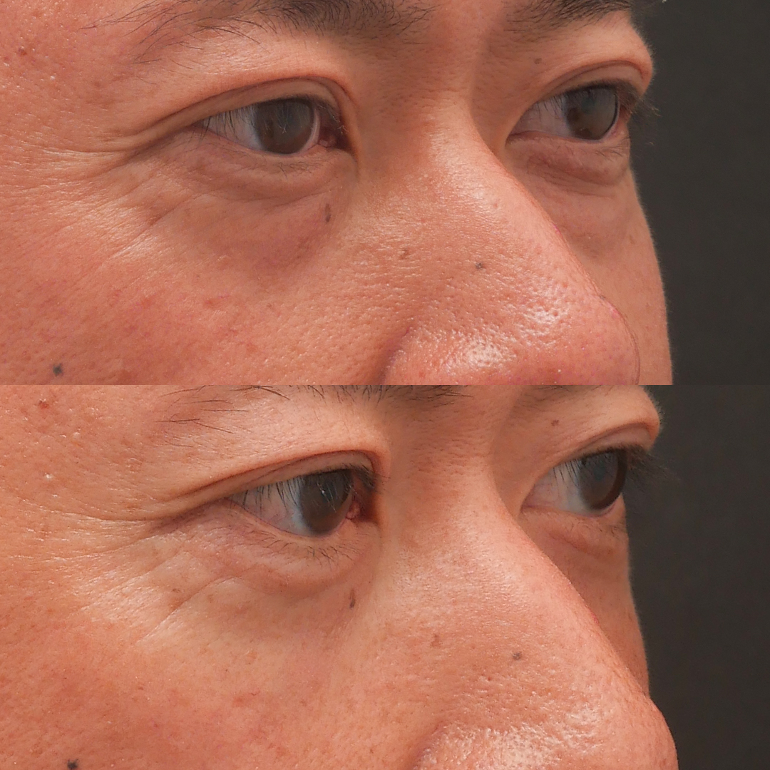 また皮膚のたるみだけではなく、脂肪の膨らみも気になる場合は下眼瞼脱脂術と下眼瞼除皺術を組み合わせて除去することも可能です。