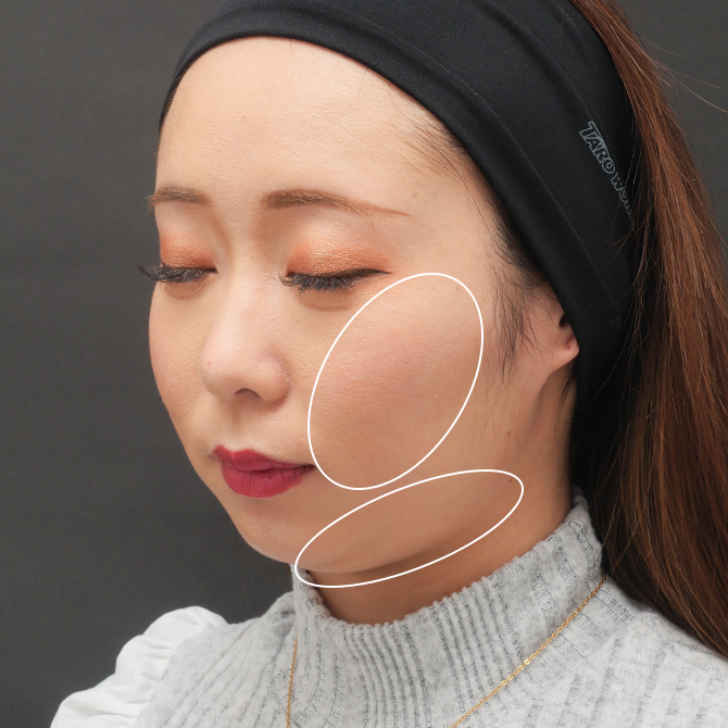 この方のポイントは、脂肪吸引のみではなく、複合的なアプローチを行う必要があることです。まず、頬に関しては下膨れの原因がバッカルファットが主原因であるため、皮下脂肪の吸引をいくら行なっても解決しないばかりか、余計に下膨れ感を目立たせてしまう危険性も。バッカルファットを少量切除し、軽くなった頬とフェイスラインを馴染ませるように脂肪吸引を行うのが正解です。顎下はしっかりと吸引を行いましたが、この方の場合、脂肪吸引のみで二重顎の改善は狙っていません。というのも、顎が小さく後退してる場合は、顔と首の皮膚が連続してしまい、骨格的に二重顎になりやすいからです。原因を正しく分析し、術後に顎のヒアルロン酸を注入し、骨格補正することで初めて二重顎が改善されます。